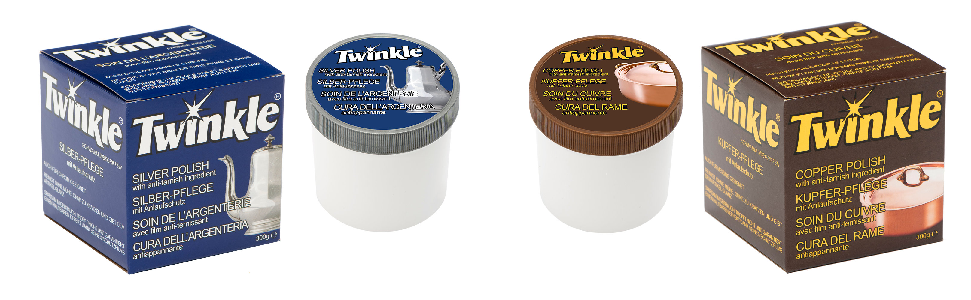TWINKLE, gamme de produits pour le nettoyage et l'entretien d’objets en métal et de surfaces métalliques (or, argent, cuivre laiton, étain, plomb, chrome, acier inox, etc…). Les produits TWINKLE nettoient, décrassent, ralentissent l’oxydation et prolongent durablement l'éclat des objets traités. Leur efficacité est reconnue depuis plus de 50 ans, par les particuliers et différents professionnels (galeristes, maisons de ventes, antiquaires, restaurateurs d’automobiles, musiciens, hôteliers/restaurateurs, etc…).